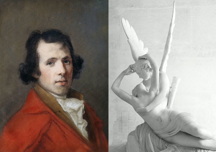 被認為是18世紀歐洲最佳雕塑家的安東尼奧·卡諾瓦(Antonio Canova)的作品代表了新古典主義風格的藝術,同樣受到巴洛克圖案和古代的啟發。他以柔和的造型和富有表現力的栩栩如生的作品而著稱,而這些作品仍然高度依賴古董主題和理想。威尼斯雕刻家最著名的雕塑之一是柔軟而感性的“由丘比特之吻復興的靈魂”(1787年),描繪了激動人心的神話般的戀人。